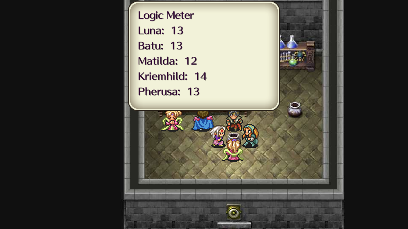 ・Logic (理力, LOG): Hidden parameter on SFC. Remaster: can be measured in the Magic Research Center. Affects spell power, positively for Dark Magic, negatively for all other offensive spells.