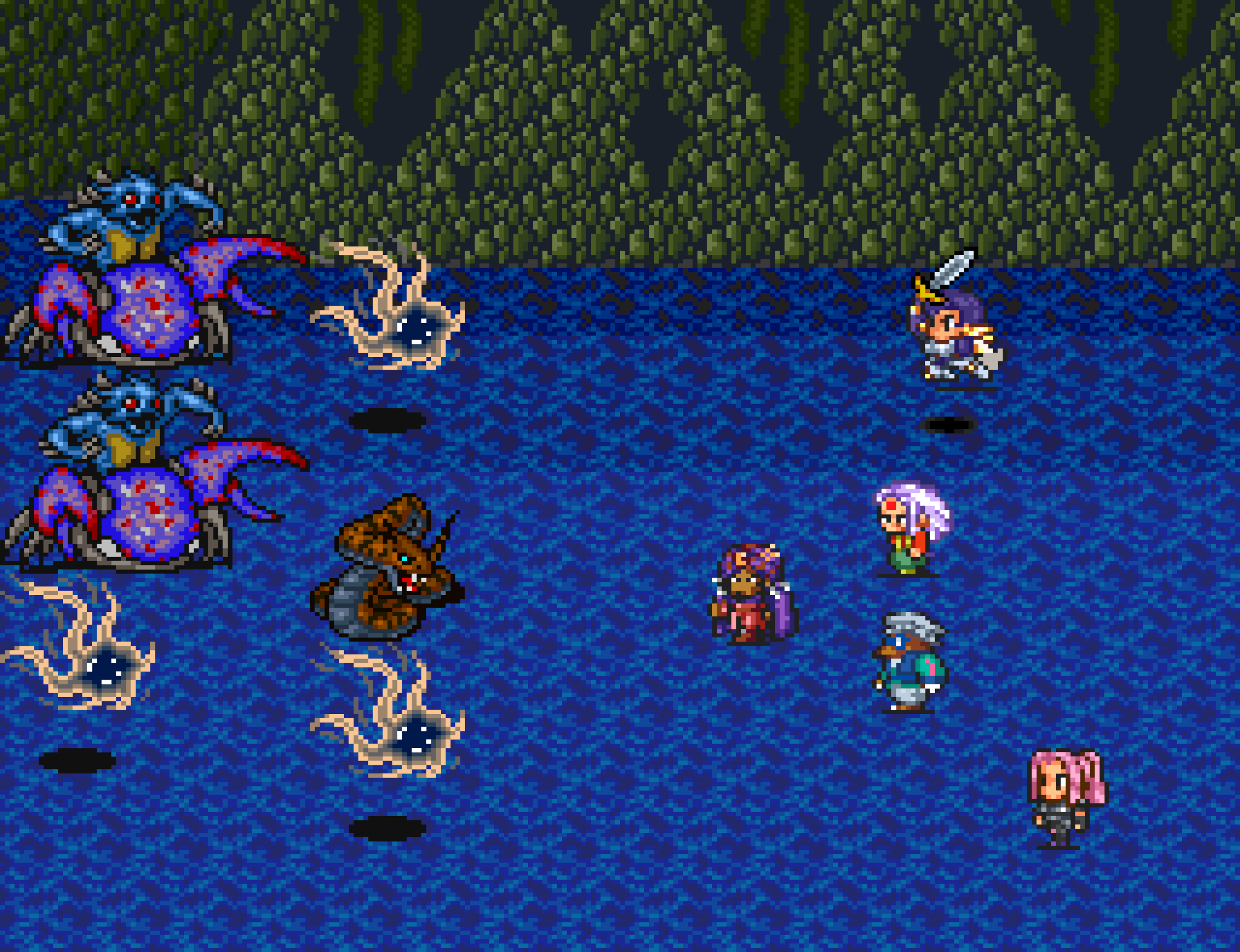 During battle, it is possible to boost your stats and to lower your enemies', thanks to techs or spells.